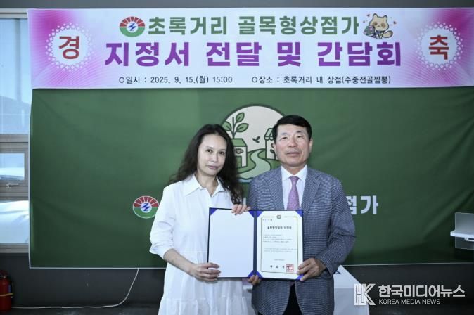 [ 한국미디어뉴스 김서안 기자 ] 구리시는 9월 15일 ‘초록 거리 골목형 상점가’ 지정서를 갈매 순환로 204번 길 일대 상인회에 전달하고 상인들과 소통의 시간을 가졌다고 밝혔다. 앞서 시는 지난 8월 28일 갈매동 갈매 순환로 204번 길 일대를 6번째‘초록 거리 골목형 상점가’로 지정한 바 있다.
