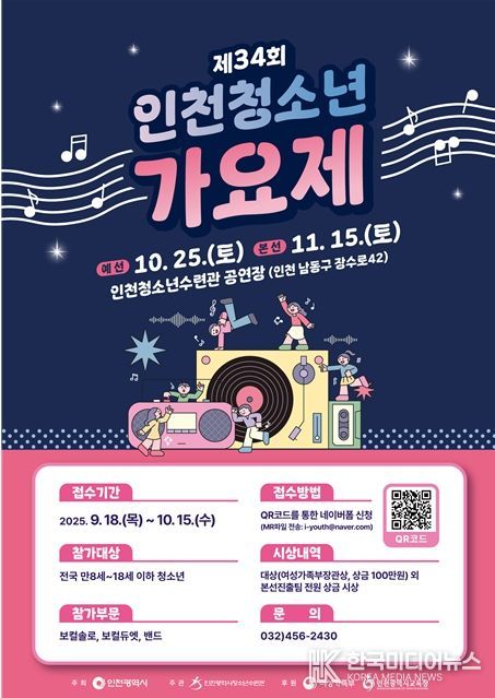 [ 한국미디어뉴스 이원영 기자 ] 인천시설공단은 청소년들의 음악적 열정과 끼를 발산하고 건전한 청소년 문화를 조성하고자 '제34회 인천청소년 가요제'의 참가자 모집을 내달 15일까지 진행한다.