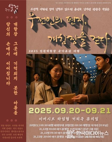 [ 한국미디어뉴스 이원영 기자 ] 뮤지컬 '우전인의 편지, 개항장을 걷다'가 오는 2025년 9월 20일~21일 ≪2025 인천 개항장 국가유산 야행≫ 기간 중 개항장 일대에서 다시 선보인다.