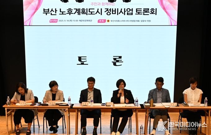 [ 한국미디어뉴스 이원영 기자 ] 부산광역시의회 의원연구단체‘스마트시티 리빙랩’이 주최하는『주민과 함께하는 노후계획도시 정비사업 토론회』가 18일, 해운대문화회관 고운홀에서 개최됐다.