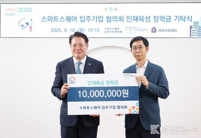 [ 한국미디어뉴스 이보영 기자 ] 안양시 인재육성재단은 18일 스마트 스퀘어 입주기업 협의회로부터 1천만 원의 인재육성 장학금을 기탁받았다고 19일 밝혔다.