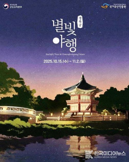 [ 한국미디어뉴스 이원영 기자 ] 국가유산청 궁능유적본부는 국가유산진흥원과 함께 10월 15일부터 11월 2일까지 매주 수~일요일 경복궁 북측 권역(서울 종로구)에서 2025년 하반기 '경복궁 별빛야행'을 개최한다.