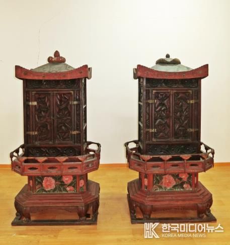 경장은 사찰에서 경전을 보관하기 위해 만든 목공예품으로 크기와 형태가 거의 비슷한 두 점으로 구성되어 있다.
