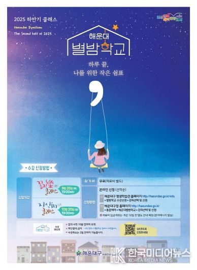 [ 한국미디어뉴스 이원영 기자 ] 해운대구는 직장인과 청년층이 퇴근길에 평생학습을 즐길 수 있도록 10월 13일~11월 28일‘해운대 별밤학교’를 운영한다.