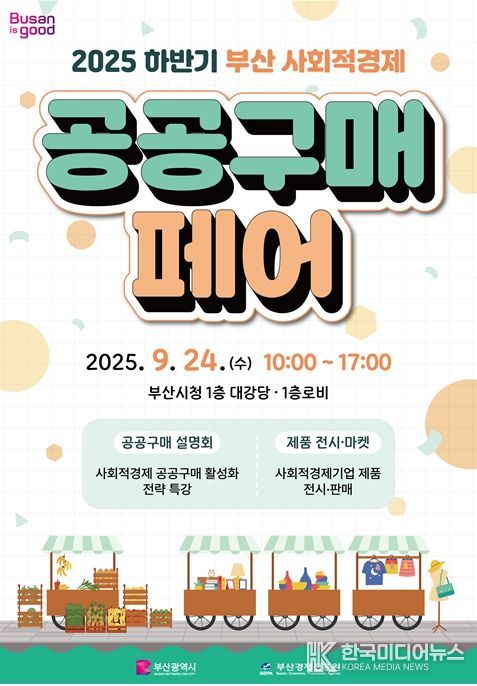 [ 한국미디어뉴스 이원영 기자 ] 부산시는 내일(24일) 오전 10시 시청 1층 대강당과 로비에서 '2025 하반기 부산 사회적경제 공공구매 페어'를 개최한다고 밝혔다.