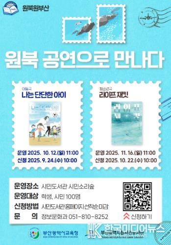 한편, 두 연극은 시민도서관 상연 후 10월과 11월 두 달 간 개림초, 가람중 등 부산 시내 14개 학교를 순회하며 학생들에게 선보일 정이다.