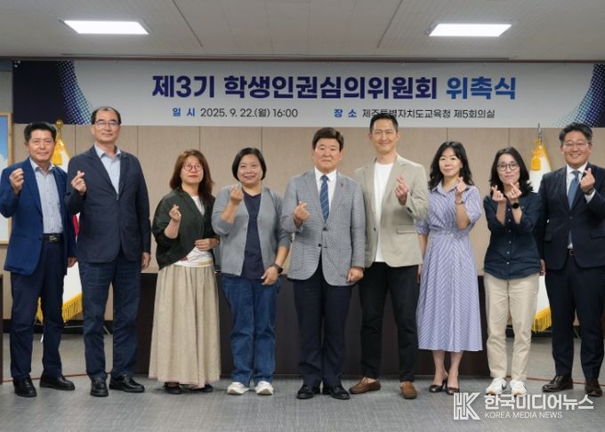 [ 한국미디어뉴스 이원영 기자 ] 제주특별자치도교육청은 22일 본청 제5회의실에서 ‘제3기 학생인권심의위원회’ 위촉식을 열고 위원들에게 위촉장을 전달했다.