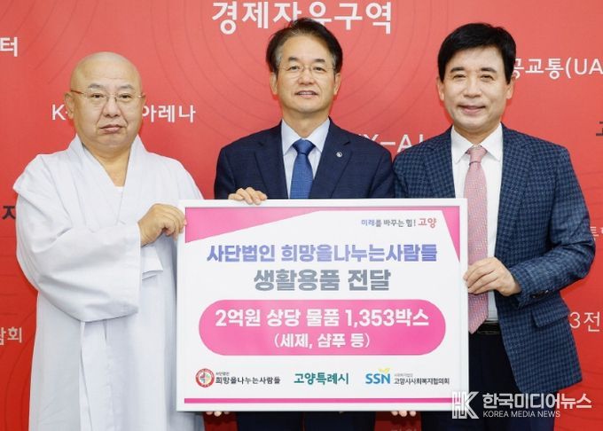 [ 한국미디어뉴스 문상수 기자 ] 고양특례시는 23일 (사)희망을 나누는 사람들로부터 2억 원 상당의 생활용품 1,353박스를 전달받았다고 밝혔다.