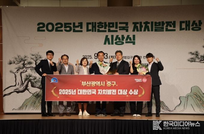 [ 한국미디어뉴스 이원영 기자 ] 부산 중구는 지난 23일 열린‘2025 대한민국 자치발전 대상’시상식에서 기초자치단체 부문 수상의 영예를 안았다.