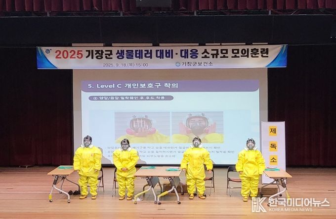 [ 한국미디어뉴스 이원영 기자 ] 기장군은 최근 기장군청 차성아트홀에서 전국(장애인)체육대회를 앞두고 ‘생물테러 대비·대응 모의훈련’을 성황리에 마쳤다고 23일 밝혔다.