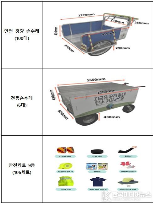 물품은 시 16개 구·군의 신청을 받아 ▲경량손수레와 안전키트는 폐지수거어르신에게, ▲전동손수레는 우리동네 사회가치경영(ESG) 센터 등으로 순차적으로 전달될 예정이다.
