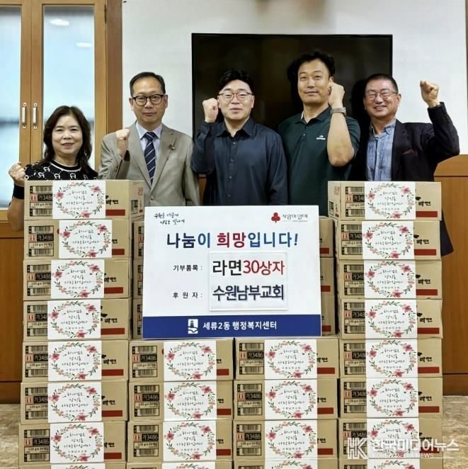 [ 한국미디어뉴스 이보영 기자 ] 수원시 권선구 세류2동 소재 수원남부교회는 지난 23일, 지역 내 취약계층을 위해 라면 30상자를 세류2동 행정복지센터에 기부했다.