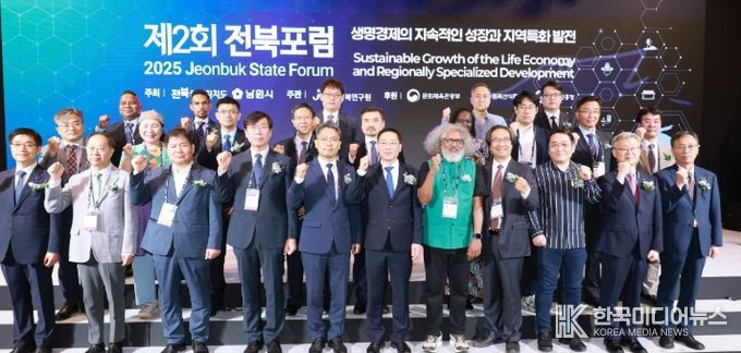 [ 한국미디어뉴스 이종철 기자 ] 생명경제 비전 실현을 위한 글로벌 협력의 장인 제2회 ‘전북포럼’이 24일 남원 스위트호텔에서 성황리에 개최됐다. 이번 포럼을 통해 전북은 국제사회와의 연대를 강화하고, 농생명·문화관광 산업을 중심으로 한 지역 특화 발전 전략을 국내외에 공유하며 생명경제도시로의 도약 기반을 다졌다.