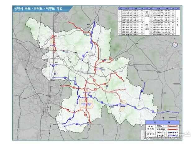 현재 용인시에서는 국도 3곳, 국지도 5곳, 지방도 6곳 등 총 14개 노선에서 도로 건설과 확장 사업이 추진되고 있다.