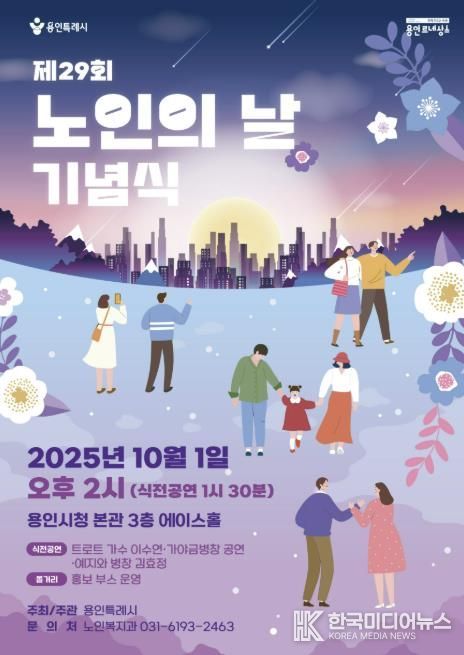 [ 한국미디어뉴스 이원영 기자 ] 용인특례시는 10월 1일 시청 에이스홀에서 ‘노인의 날 기념식’을 개최한다고 25일 밝혔다.