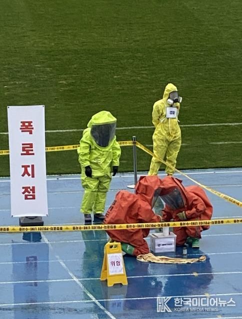 [ 한국미디어뉴스 이보영 기자 ] 수원시 장안구보건소는 24일 수원종합운동장에서 수원장안경찰서, 수원소방서 등 유관기관과 함께 ‘2025년 생물테러 대응 대규모 합동훈련’을 했다.