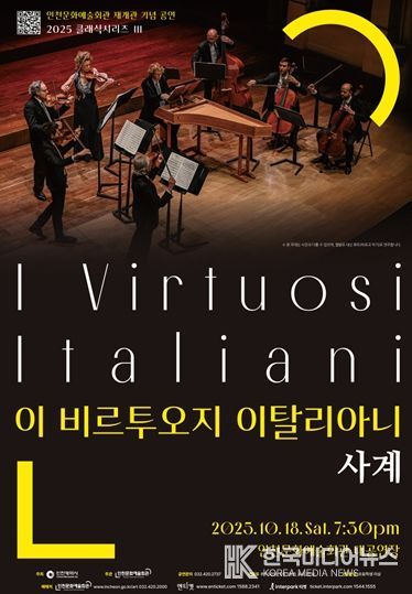 [ 한국미디어뉴스 이원영 기자 ] 인천광역시 문화예술회관이 전관 재개관을 기념해 10월 18일 인천문화예술회관 대공연장에서 2025 클래식 시리즈 세 번째 무대를 선보인다. 이탈리아를 넘어 국제적으로 명성을 쌓아온 ‘이 비르투오지 이탈리아니’를 초청해 환상적인 연주를 펼쳐 보인다.