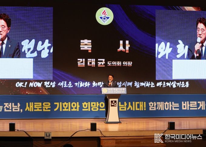 [ 한국미디어뉴스 이종철 기자 ] 김태균 전남도의장은 9월 25일 전남도청 김대중강당에서 개최된 ‘2025 바르게살기운동 전남회원대회’에 참석하여 아름다운 전남만들기를 위해 노력해 온 유공회원에게 표창을 수여하고 축사와 함께 격려했다.