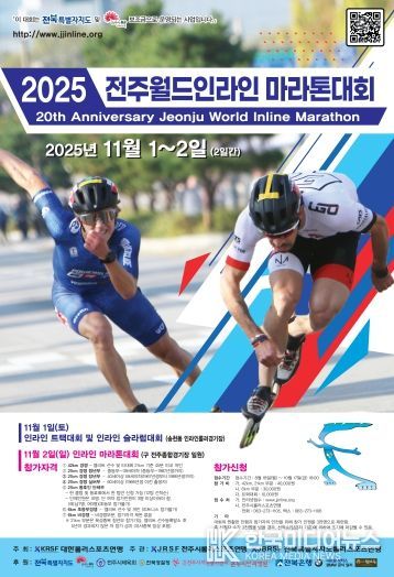 전주시는 ‘2025 전주월드인라인마라톤대회’가 오는 11월 1일부터 2일까지 옛 전주종합경기장에서 전주월드컵경기장까지 이어지는 코스 등 전주시 일원에서 펼쳐진다고 26일 밝혔다.