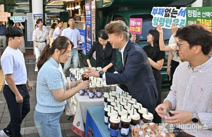 이날 캠페인에서는 서구청 정문 출입구에서 출근하는 직원들에게 청렴 명언이 담긴 포춘쿠키와 커피·에이드 등 음료를 함께 제공해 청렴 메시지를 전했다.