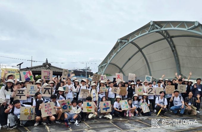특히 기후수비대 활동 티셔츠를 착용한 학생들이 각자 준비한 종이 상자 글자를 이어 붙여‘2025 다같이 지구력 기후수비대, 행동하는 우리가 푸른 지구를 지키는 진짜 힘!’이라는 문구를 완성하며 캠페인의 의미를 되새겼다.