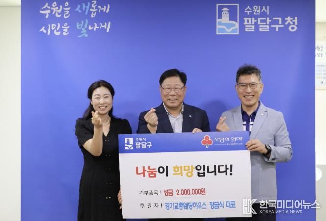 [ 한국미디어뉴스 이보영 기자 ] 수원시 팔달구는 지난 26일, 경기교총웨딩하우스에서 기부하는 성금 200만원 전달식을 가졌다.