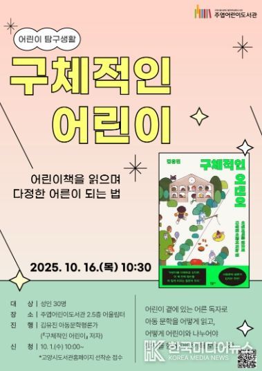 [ 한국미디어뉴스 문상수 기자 ] 고양특례시 주엽어린이도서관은 오는 10월 16일과 11월 5일 성인을 대상으로 인문학 강연‘어린이 탐구생활’을 진행한다고 밝혔다.