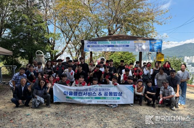 [ 한국미디어뉴스 이원영 기자 ] 부산진구 가야1동 엄광마을 주민협의회(회장 정성호)는 새뜰마을사업의 일환으로 동의대학교 교수와 학생들로 구성된 자원봉사동아리 ‘동의하자팀’과 합동으로 9월 27일 마을 환경정비 활동을 펼쳤다.