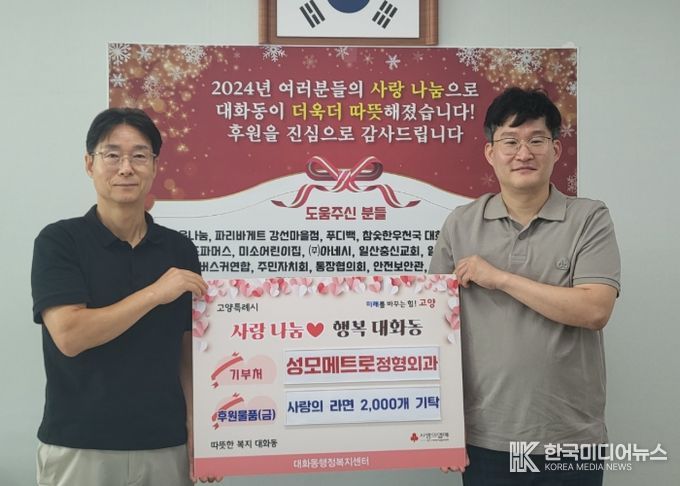 이봉재 대화동장은“지역사회의 소외된 이웃을 위해 따뜻한 나눔을 실천해 주신 성모메트로정형외과에 감사하다”며, “라면 2,000개는 후원자의 뜻에 따라 도움이 필요한 가구에 신속하고 공정하게 전달해 모두가 따뜻한 명절을 보낼 수 있도록 하겠다”고 전했다.