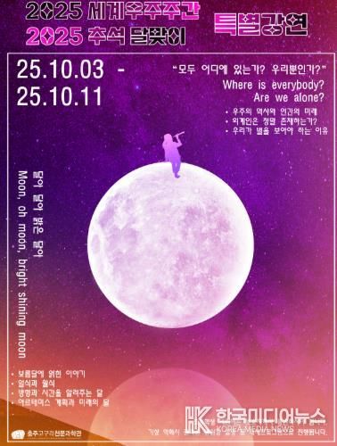[ 한국미디어뉴스 김풍옥 기자 ] 충주고구려천문과학관에서는 세계우주주간과 추석 한가위 연휴를 맞아 10월 3일부터 11일까지 특별 강연과 달맞이 관측 행사를 진행한다.