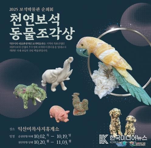 [ 한국미디어뉴스 이종철 기자 ] 익산시 보석박물관은 추석 연휴가 시작되는 10월 2일부터 11월 3일까지 익산미륵사지휴게소(양방향)에서 '천연보석 동물조각상' 순회전시를 진행한다.