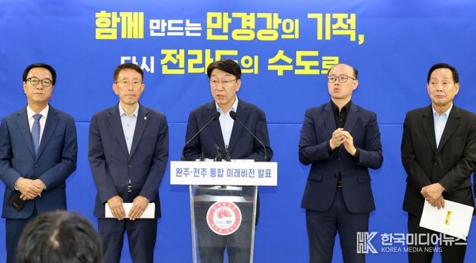 우범기 전주시장은 30일 시청 4층 회의실에서 ‘완주-전주 통합시 비전 발표 기자회견’을 열고 “지방 소멸의 절박한 위기 앞에서 완전(完全)한 도시, 완전(完全)한 미래로 나아가기 위한 완주·전주 통합의 염원이 날로 뜨겁고 깊어지고 있다”라며 “완주와 전주가 하나된 힘으로 함께 미래를 그리고 함께 미래로 나아간다면, 한강의 기적을 뛰어넘는 만경강의 기적을 만들 수 있을 것”이라고 밝혔다.