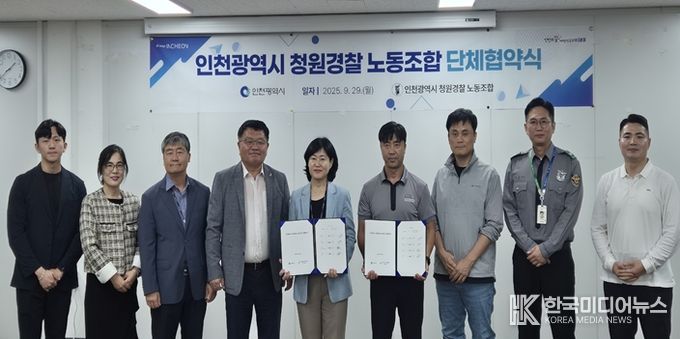 [ 한국미디어뉴스 이원영 기자 ] 인천광역시는 지난 9월 29일 시청 소통회의실에서 인천광역시 청원경찰 노동조합과 역사적인 첫 단체협약을 체결했다고 밝혔다.