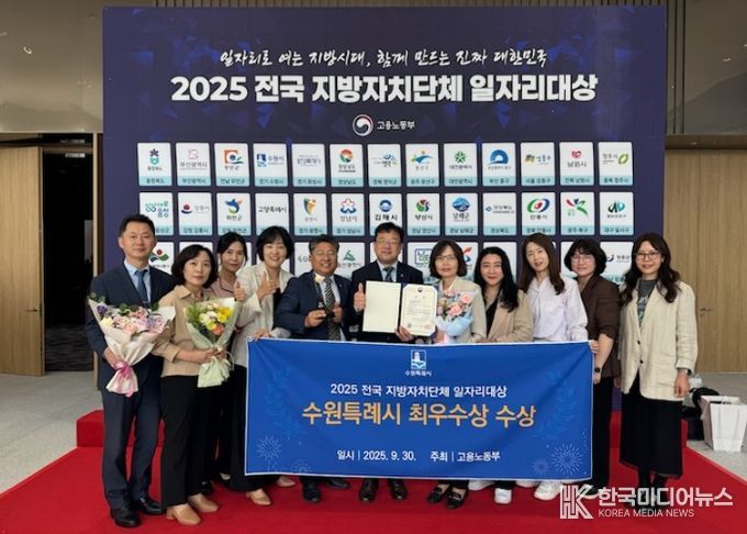 [ 한국미디어뉴스 이보영 기자 ] 수원특례시가 고용노동부 주관 ‘2025년 전국지방자치단체 일자리 대상’ 지역일자리 목표 공시제 부문에서 최우수상(고용노동부장관상)을 받았다.