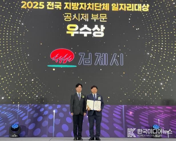 [ 한국미디어뉴스 이종철 기자 ] 김제시는 30일 청주 오스코에서 열린 '2025년 전국 지방자치단체 일자리대상'시상식에서 공시제 부문 우수상을 수상하며 고용노동부 장관 표창과 함께 인센티브 사업비 5백만원을 확보했다고 밝혔다.