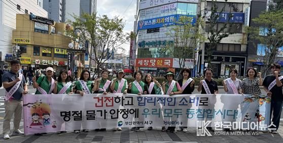 [ 한국미디어뉴스 이원영 기자 ] 부산 서구는 지난 29일, 추석 명절을 맞아 부산 서구새마을회와 함께 충무동 골목시장, 새벽시장, 해안시장 일원에서 명절 물가 안정 유도 및 전통시장 이용 캠페인을 실시하며, 딱! 살기 좋은 서구 만들기에 앞장섰다.