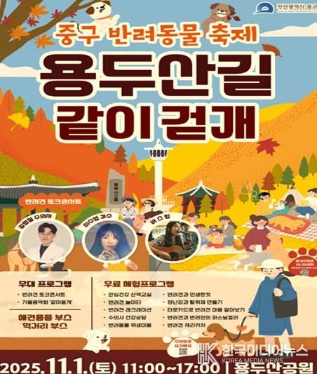 [ 한국미디어뉴스 이원영 기자 ] 부산 중구는 오는 11월 1일 용두산공원 일원에서 첫 반려동물 축제, ‘용두산길 같이걷개’를 개최한다.