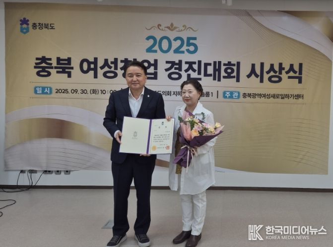 [ 한국미디어뉴스 김풍옥 기자 ] 충북 영동여성새로일하기센터는 지난달 30일 열린 ‘2025 충북 여성창업 경진대회’에서 ‘율동’ 박율채 대표가 우수상을 수상했다고 밝혔다.