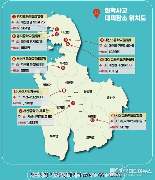 시는 현재 환경부의 지침에 따라 8곳의 화학사고 대피장소를 지정, 운영하고 있다.