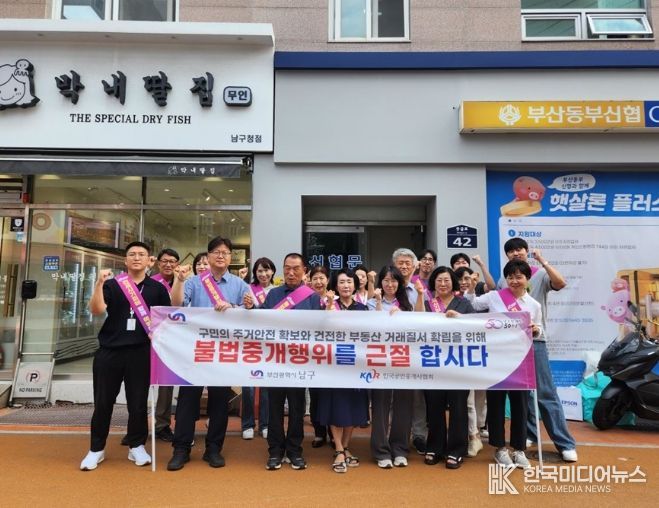 [ 한국미디어뉴스 이원영 기자 ] 부산 남구는 지난 9월 30일, 한국공인중개사협회 부산광역시 남부지회와 함께 「부동산 불법 중개행위 근절 캠페인」을 실시했다. 이번 캠페인은 개청 50주년을 기념해 구민의 안전한 부동산 계약을 지원하고, 불법 중개행위를 예방하기 위해 마련됐다.