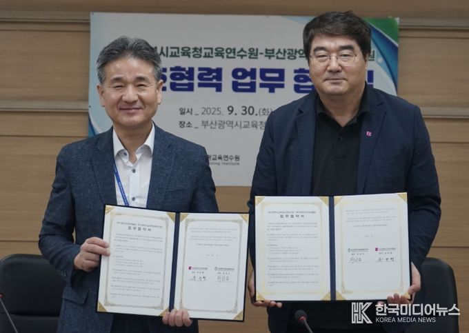 [ 한국미디어뉴스 이원영 기자 ] 부산광역시교육청 교육연수원은 9월 30일 오후 교육연수원에서 부산광역시인재개발원과 부산광역시 연수교육 발전을 위한 업무협약을 체결했다고 1일 밝혔다.