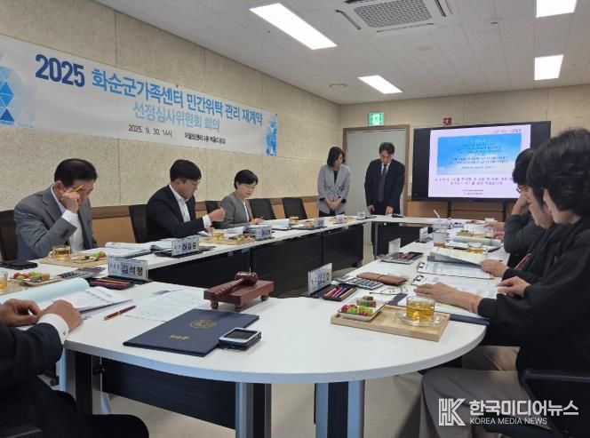 [ 한국미디어뉴스 이종철 기자 ] 화순군은 2025년 9월 30(화) 어울림센터 3층 가족센터에서 ‘화순군가족센터 민간 위탁 재계약을 위한 선정심사위원회’를 열고, 향후 5년(2026년~2030년) 동안 가족센터를 운영할 위탁기관 재계약 여부를 심의·의결했다고 밝혔다.