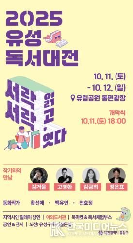 [ 한국미디어뉴스 이보영 기자 ] 대전 유성구는 10월 11일과 12일 이틀간 유림공원 동편 잔디광장에서 ‘2025 유성독서대전’을 개최한다.