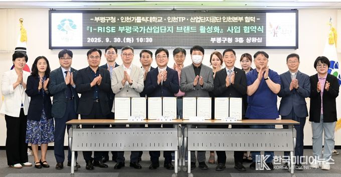 [ 한국미디어뉴스 양선희 기자 ] 부평구는 지난 30일 구청 상황실에서 인천가톨릭대학교 ·인천테크노파크·한국산업단지공단과 함께 ‘I-RISE 부평국가산업단지 브랜드 활성화 사업’ 협약을 체결했다.