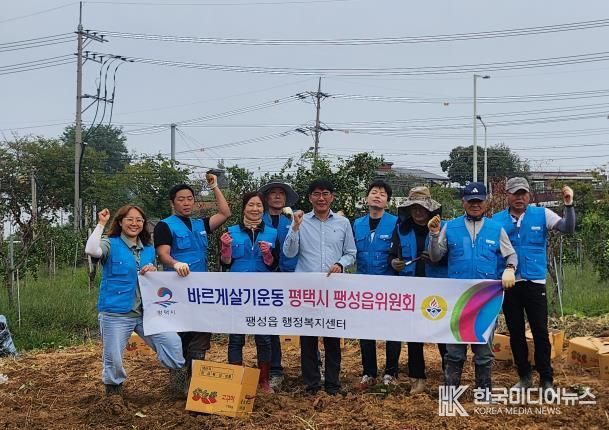 [ 한국미디어뉴스 이보영 기자 ] 평택시 바르게살기운동 팽성읍 위원회는 지난달 30일 팽성읍 남산리 77-14 텃밭에서 ‘이웃사랑 고구마 수확 행사’를 진행했다.
