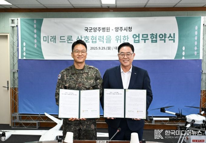 [ 한국미디어뉴스 김서안 기자 ] 양주시가 지난 29일 국군양주병원과 손잡고 ‘드론산업 발전 및 활용을 위한 업무협약’을 체결했다.