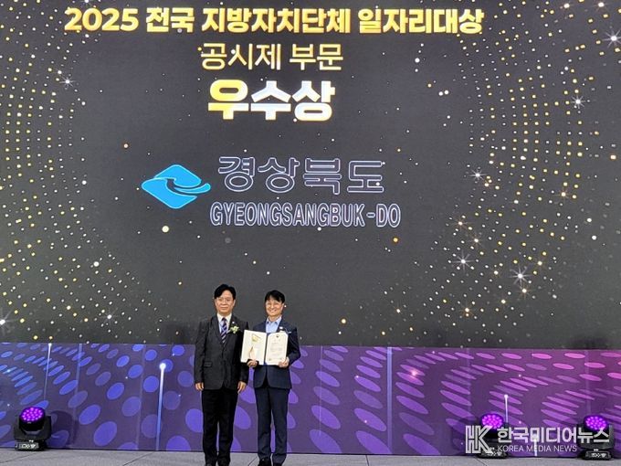 [ 한국미디어뉴스 이보영 기자 ] 경북도는 30일 청주 오스코에서 열린 고용노동부 주관 ‘2025년 전국지방자치단체 일자리대상’에서 공시제 부문 ‘우수상’, 우수사업 부문 ‘최우수상’을 수상했다.