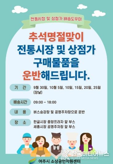 [ 한국미디어뉴스 이보영 기자 ] 여주시는 여주시소상공인지원센터 주관으로 다가오는 추석 명절을 맞이하여 전통시장과 상점가를 찾는 시민들의 편의를 돕고 전통시장 활성화를 위해 ‘전통시장 및 상점가 배송 도우미’ 서비스를 운영한다.