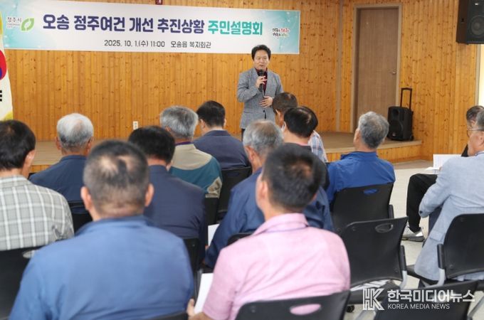 [ 한국미디어뉴스 김풍옥 기자 ] 청주시는 1일 흥덕구 오송읍 복지회관에서 신병대 청주부시장 주재로 오송 정주여건 개선 추진상황 주민설명회를 열었다. 설명회에는 관계 공무원과 지역 주민 등 150여명이 참석했다.