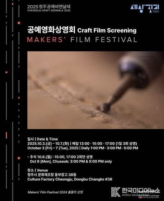 [ 한국미디어뉴스 김풍옥 기자 ] 청주공예비엔날레조직위원회는 10월 3일부터 7일까지 닷새간 문화제조창 동부창고 38동에서 추석 특별 공예영화상영회를 연다.
